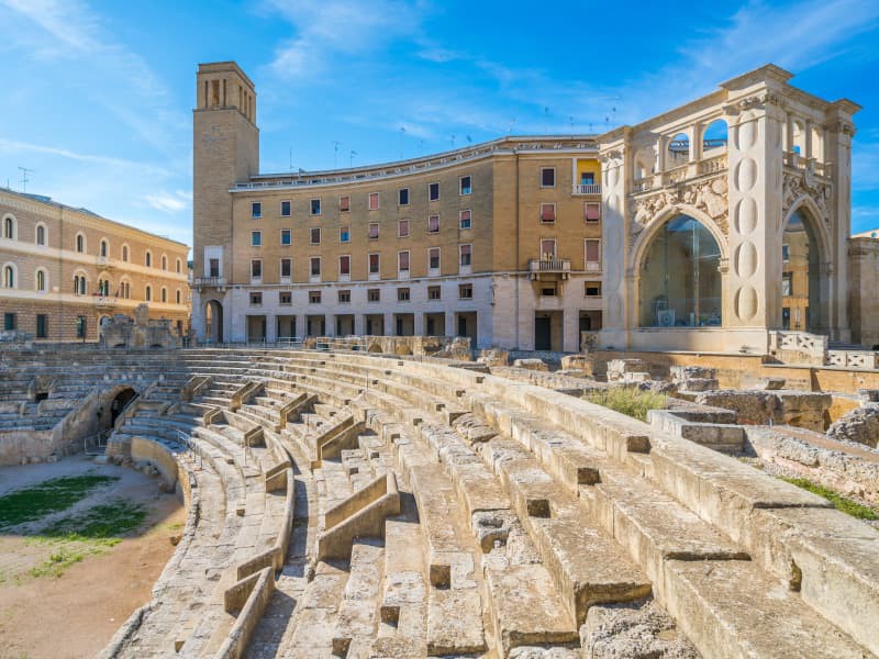 Lecce è passata da essere una città greca a una città romana. La nostra passeggiata inizierà dalla Piazza Sant'Oronzo, sede di uno dei più importanti resti romani: 25.000 posti dell'anfiteatro, del I secolo a.C., e una colonna che originariamente si trovava a Brindisi per segnare la fine della Via Appia.
