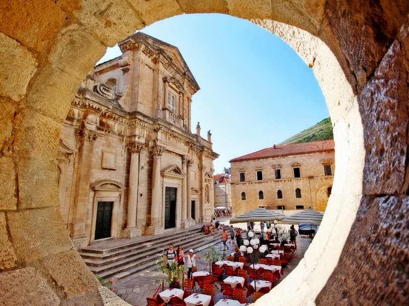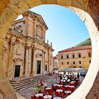 Durante la nostra passeggiata nel centro storico, visiteremo alcuni dei monumenti più importanti di Dubrovnik. Inizieremo con il Monastero Domenicano, un'imponente costruzione che combina stili romanico, gotico e barocco, grazie al lungo processo di costruzione terminato nel XIV secolo. Dopo il devastante terremoto del 1667, gran parte della sua facciata fu ricostruita. Il monastero è famoso per il suo splendido chiostro con archi, aranci e palme, e un pozzo in pietra che fu vitale durante l'assedio di Dubrovnik nella Guerra d'Indipendenza, fornendo acqua potabile agli abitanti della città.