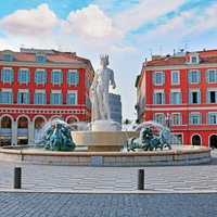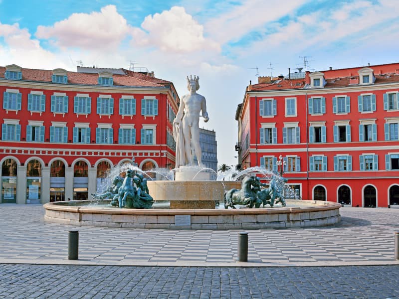 Passeggeremo attraverso i Giardini Alberto I fino a Place Massena, la piazza principale, con le sue facciate rosse e finestre blu. Costruita sul modello della Piazza Vittorio Veneto di Torino e più volte trasformata nel corso degli anni, Place Massena è oggi il centro della vita sociale di Nizza, una piazza molto vivace che ospita la grande statua di Apollo alta sette metri. Inoltre, statue opache di uomini inginocchiati rappresentanti i sette continenti si trovano ai lati della piazza, donandole un tocco moderno.