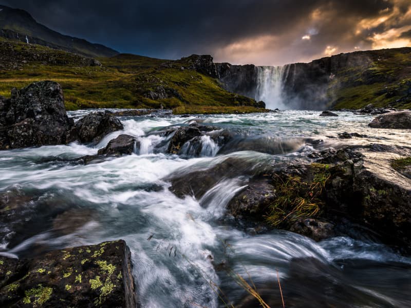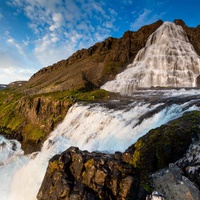 In realtà, è una serie di sette cascate che scendono come un velo nuziale dal bordo di una scogliera, e Dynjandi vi lascerà senza fiato. Il fiume nasce nel lago Eyjavatn, sugli altopiani di Gláma, considerato un ghiacciaio fino alla fine del XIX secolo. Ci fermeremo per un'ora per godere della cascata e del paesaggio. È possibile fare una breve passeggiata per ammirare da vicino la cascata più alta, con una vista spettacolare del fiordo e delle montagne circostanti.