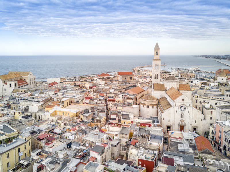Camminando lungo le Grandi Mura Medievali, ammireremo un magnifico panorama, raggiungeremo la Cattedrale di San Nicola in stile romanico, costruita in onore del santo patrono di Bari. La basilica, fondata verso la fine dell'XI secolo d.C., è stata un importante centro di pellegrinaggio religioso per quasi un millennio. Continuiamo con una visita esterna dell'antico castello normanno, opera del monarca normanno Ruggero II, che lo fece erigere nel 1130, anche se fu distrutto poco dopo durante le rivolte bizantine. Raggiungeremo la Via Arco Basso, un tipico vicolo antico di Bari con case in pietra bianca e piccoli balconi tipici. Un tipico quartiere medievale e mediterraneo dove alcune donne preparano ancora "Le orechiette", pasta tipica della regione che è nata proprio in questo quartiere.