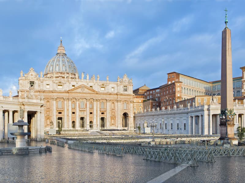 La prima sosta sarà l'incontro con la guida, che accompagnerà il tour per visitare le bellezze della Città Eterna, con la vista esterna sulla spettacolare Piazza San Pietro, in Vaticano, ma senza ingresso alla Basilica. Nell'epicentro del mondo papale, scoprirete il fascino di questo luogo di arte, cultura e potere.