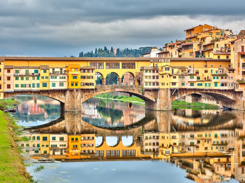 Raggiungeremo poi Ponte Vecchio, il più antico della città e l'unico rimasto intatto dal XIV secolo. La caratteristica del ponte sono le piccole case che si ergono su di esso, i magazzini di oreficeria e gioiellerie artigianali, eredi di una tradizione secolare.