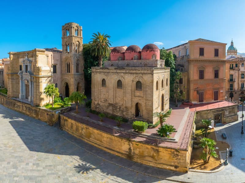 Nel suo perimetro si trovano due chiese dell'epoca del Regno Normanno di Sicilia: San Cataldo e Santa Maria dell'Ammiraglio, più comunemente nota come Chiesa della Martorana.