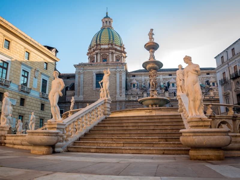 Dalla piazza continuiamo la nostra passeggiata verso Piazza Pretoria, che ospita la Fontana Pretoria, considerata una della più belle fontane italiane. Comunemente chiamata dai palermitani "la fontana della vergogna", a causa della nudità delle statue che la compongono, fu realizzata nel 1554 da Francesco Camillani a Firenze e venne in seguito trasferita a Palermo