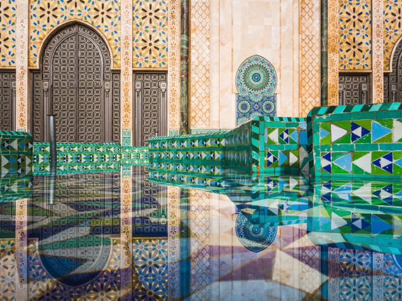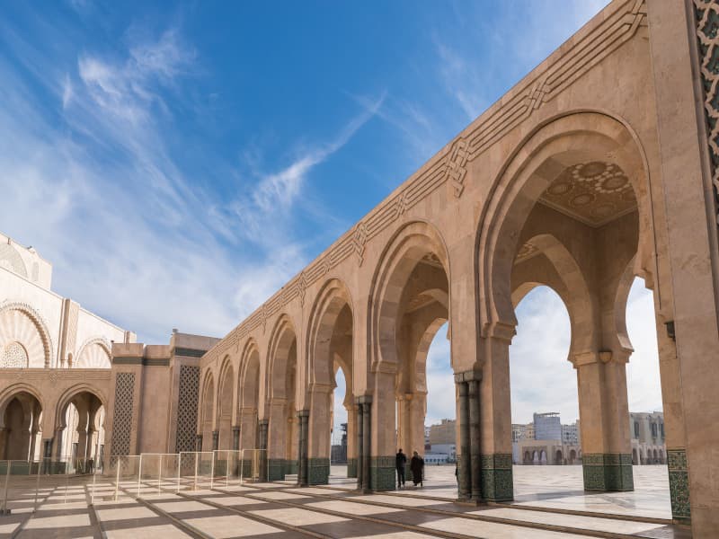 Inizieremo ammirando il suo gioiello architettonico: l'imponente Grande Moschea di Hassan II, un monumento di inizio secolo la cui imponenza si erge accanto all'oceano. Il suo minareto alto 200 metri domina l'intera città, ed è testimonianza del lavoro magistrale di artigiani come stuccatori e scultori.