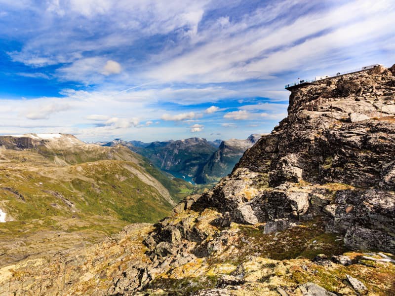 Inizieremo il nostro percorso lungo la strada che conduce al bellissimo Lago Djupvatn, situato ai piedi del monte Dalsnibba, a 1.030 metri di altitudine. Questo lago, spesso coperto di ghiaccio per gran parte dell’anno, offre un paesaggio da sogno.