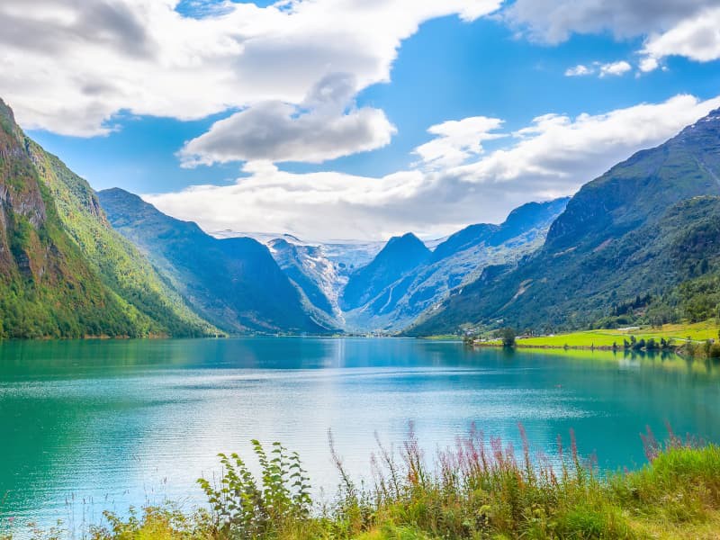 Attraverseremo il pittoresco villaggio di Olden, seguendo il corso del fiume Oldenelva, le cui acque verde smeraldo devono il loro colore ai ghiacci sciolti del ghiacciaio. Il paesaggio ci regalerà viste mozzafiato mentre costeggeremo il lago Olden e ci addentreremo nella valle di Briksdal fino a raggiungere il Briksdal Mountain Lodge.