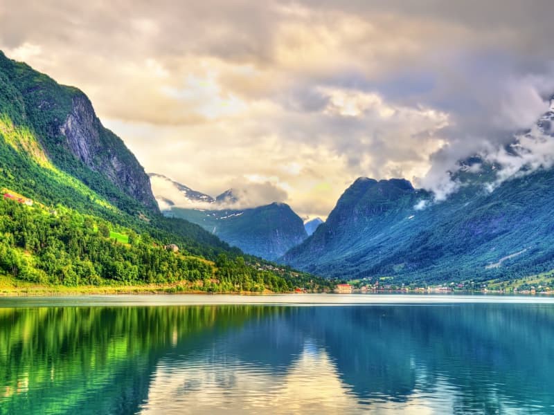 La nostra avventura inizia a Eid, un piccolo villaggio situato a nord del maestoso Nordfjord. Durante il viaggio verso Olden, passeremo accanto al lago Hornindalsvatnet, noto per essere il più profondo d’Europa, con una profondità di 514 metri.