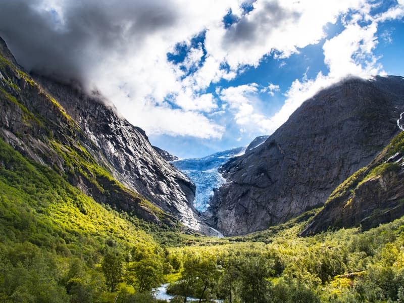 Proseguiremo attraverso la valle di Olden, un luogo di straordinaria bellezza che ci condurrà fino alla montagna di Briksdal. Da qui, ci inoltreremo nello spettacolare ghiacciaio di Briksdal, uno dei bracci del famoso ghiacciaio Jostedal, il più grande d’Europa continentale.