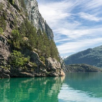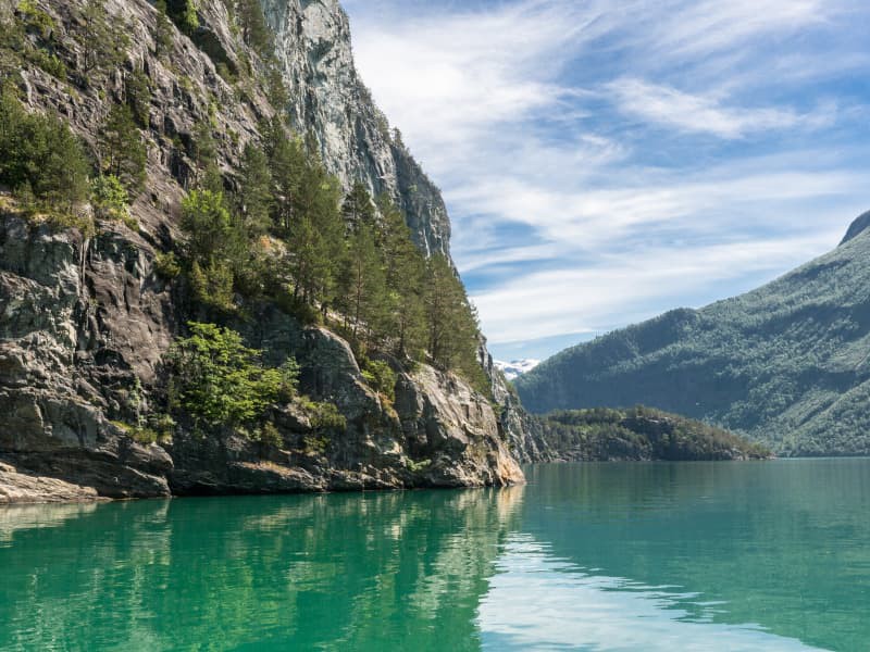 Da Åndalsnes, ci addentreremo in un paesaggio da sogno seguendo il corso del maestoso fiume Rauma, famoso per la pesca del salmone. Circondati da imponenti montagne, ammireremo il Monte Romsdalshorn, che si innalza a 1.524 metri, e il Trolltindane, con 1.554 metri. Passeremo accanto alla celebre Troll Wall, un'enorme parete verticale che sfida i più coraggiosi scalatori.