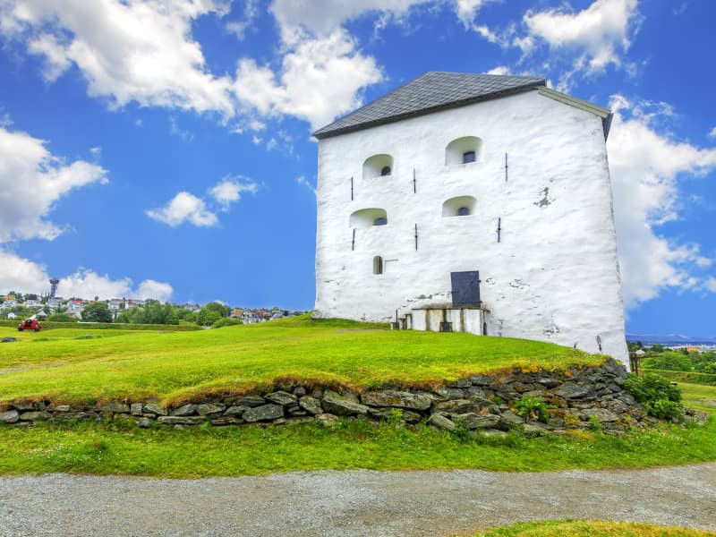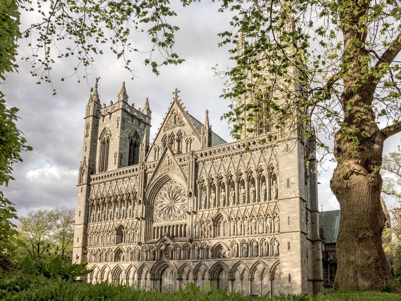Passeremo davanti al maestoso Stiftsgården, la più grande residenza reale della Scandinavia, e attraverseremo la piazza del mercato, dominata dalla statua di Olav Tryggvason, fondatore della città.