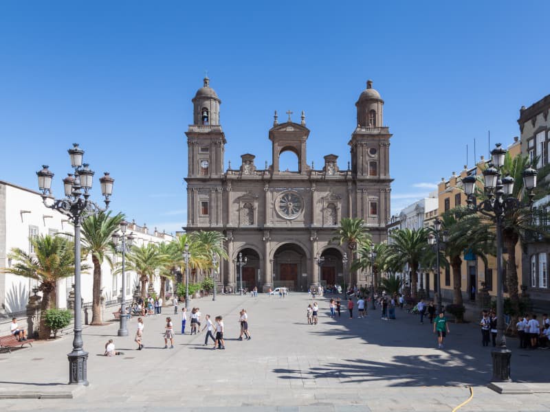 Ci dirigeremo verso il centro storico di Vegueta per visitare la Plaza Mayor de Santa Ana, uno dei luoghi più emblematici di Las Palmas, situata accanto al più importante edificio dell’architettura canaria, la Cattedrale delle Canarie, punto ideale per fotografarsi con i famosi cani di Gran Canaria e ammirare la facciata con le sue maestose torri gemelle.