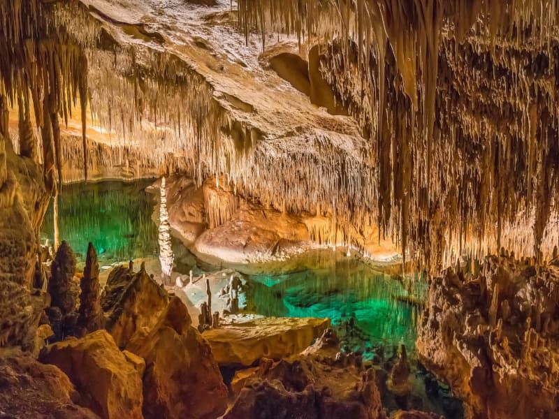 Inizieremo il nostro tour in direzione delle Grotte del Drach, situate sulla costa orientale di Maiorca. Le grotte rappresentano una delle principali attrazioni turistiche dell’isola e sono senza dubbio tra le più spettacolari, con uno sviluppo orizzontale di circa 1.200 metri e una profondità massima di 25 metri sotto la superficie.