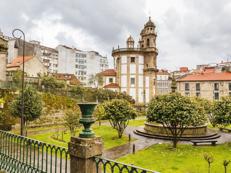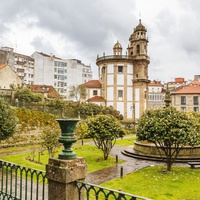 Visiteremo il famoso Santuario della Vergine Pellegrina, costruito nel 1778, nel centro storico di Pontevedra, nella Piazza del Pellegrino. Dichiarata monumento storico-artistico nel 1982, mescola il tardo barocco con forme neoclassiche, come la sua pala d'altare principale, eretta nel 1789. È uno degli edifici più simbolici e rilevanti della città ed è dedicato alla Vergine che, secondo la tradizione, guidava i pellegrini da Baiona a Santiago. L'immagine della Vergine Pellegrina (XIX secolo) è la patrona della provincia di Pontevedra e del Cammino Portoghese. Ha una pianta a forma di capasanta, simbolo dei pellegrini del Cammino di Santiago. Ci avvicineremo alla chiesa di Santa Maria, considerata uno dei gioielli dell'arte galiziana, situata sulla cima di una collina, è costruita su una piccola chiesa romanica dedicata a Santa Maria, che fu la prima parrocchia di Pontevedra. Alla fine del XV secolo, inizio del XVI secolo, la vecchia chiesa fu demolita e iniziò la costruzione del nuovo tempio in stile tardo gotico.